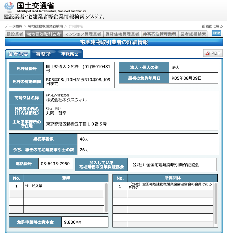 これらの情報は、国土交通省の「宅建業者検索システム」で確認することができます。