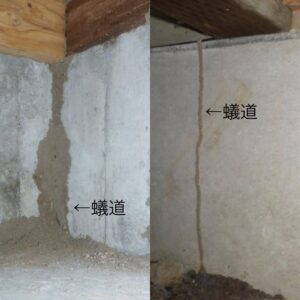 ※基礎に作られた蟻道(ぎどう)の例
