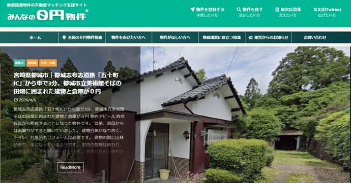 「0円都市開発合同会社」が運営しているサイトで、処分の負担が軽減される売主と、安く物件が手に入る買主、双方にメリットのある取引が実現し、空き家問題の解消に一役買っています。