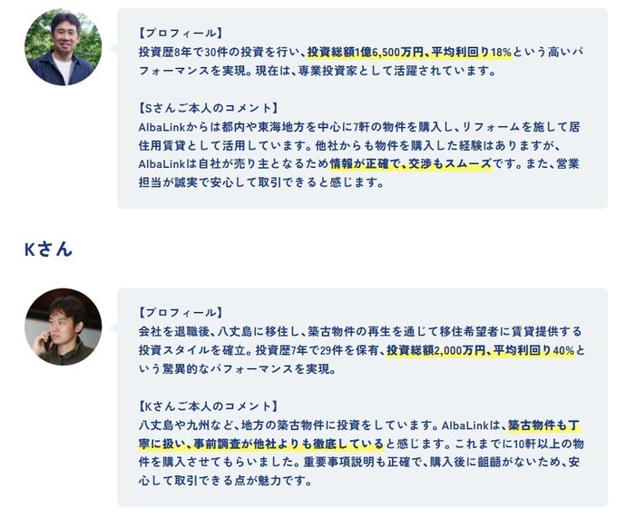 弊社から空き家を買っていただいた不動産投資家さまからは、以下のようなコメントをいただいております。